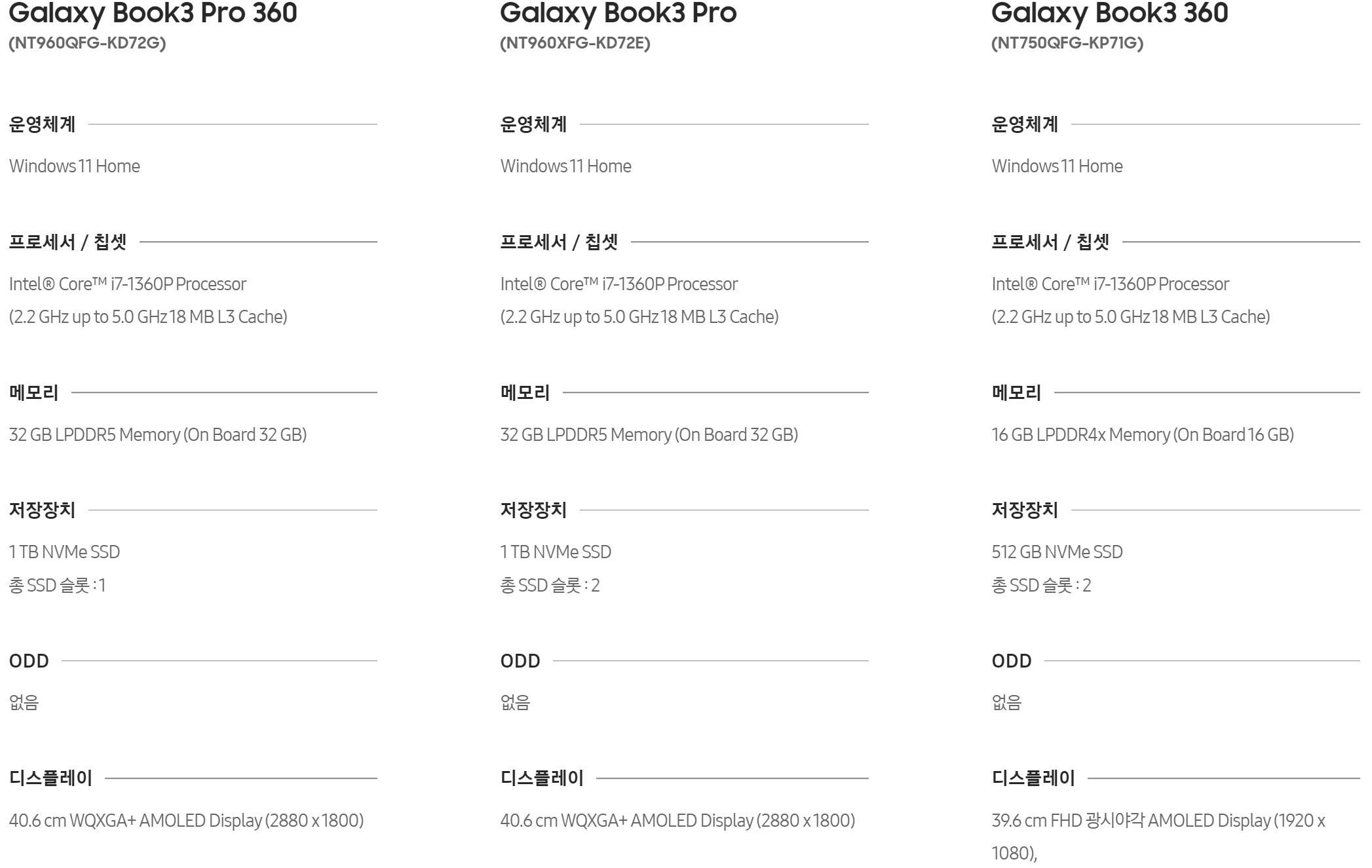1) Galaxy Book3 Pro 360 CPU Core i7 : 2,970,000원