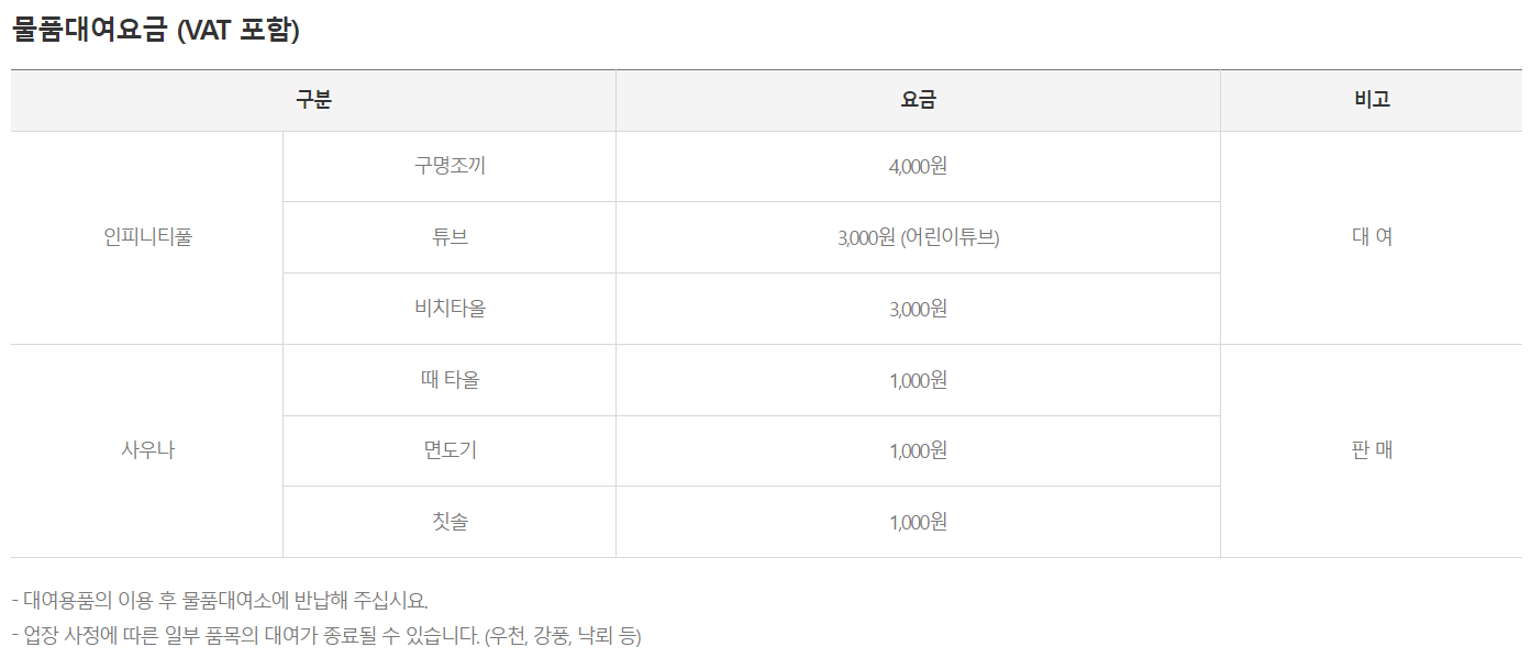 - 스노쿨링 장비, 풀페이스 수경, 물총, 오리발 반입 불가