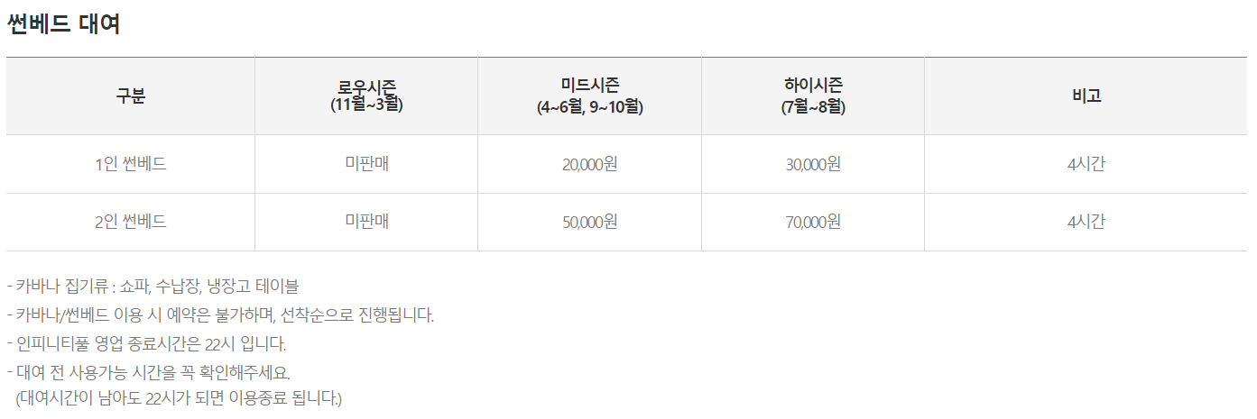 - 인피니티풀 내의 썬베드, 카바나 유료 대여