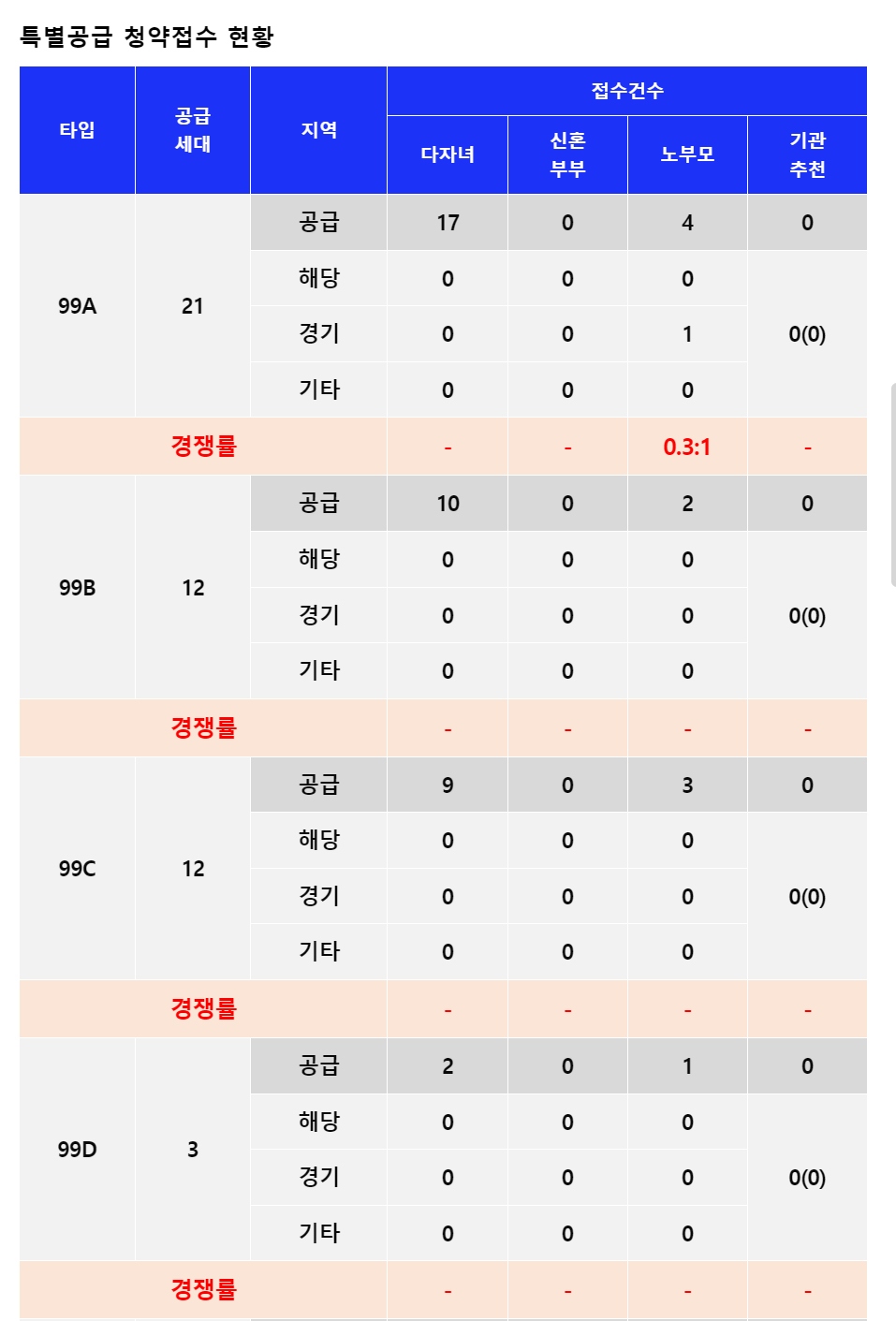 ※ 아실에서만 특별공급 청약접수 현황 제공
