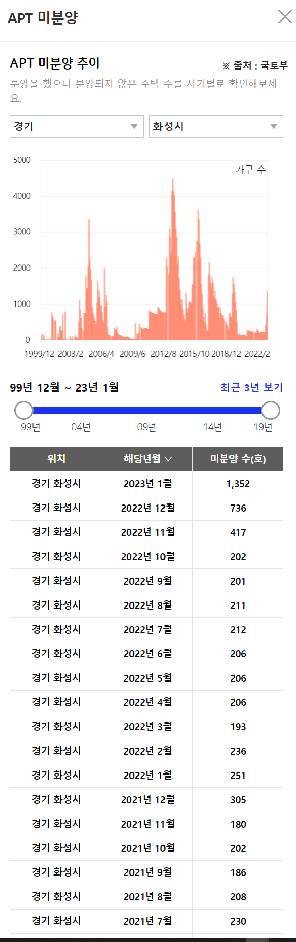 <경기 화성시 미분양 현황>