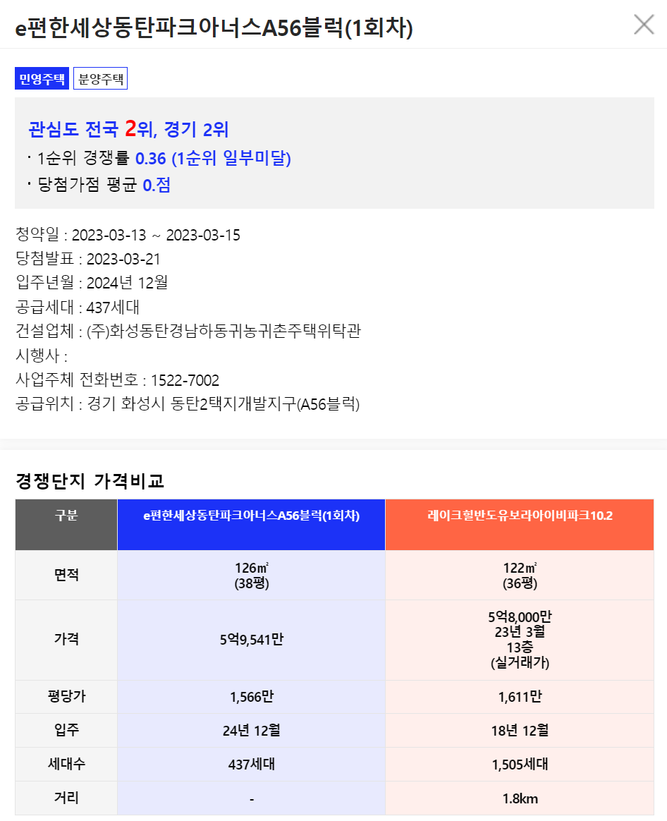 아파트 선택하면 경쟁단지와의 가격비교도 할 수 있음