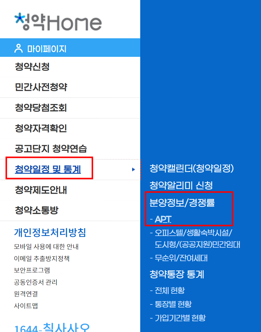 ● 청약홈 - 청약일정 및 통계 - 분양정보/경쟁률 - APT