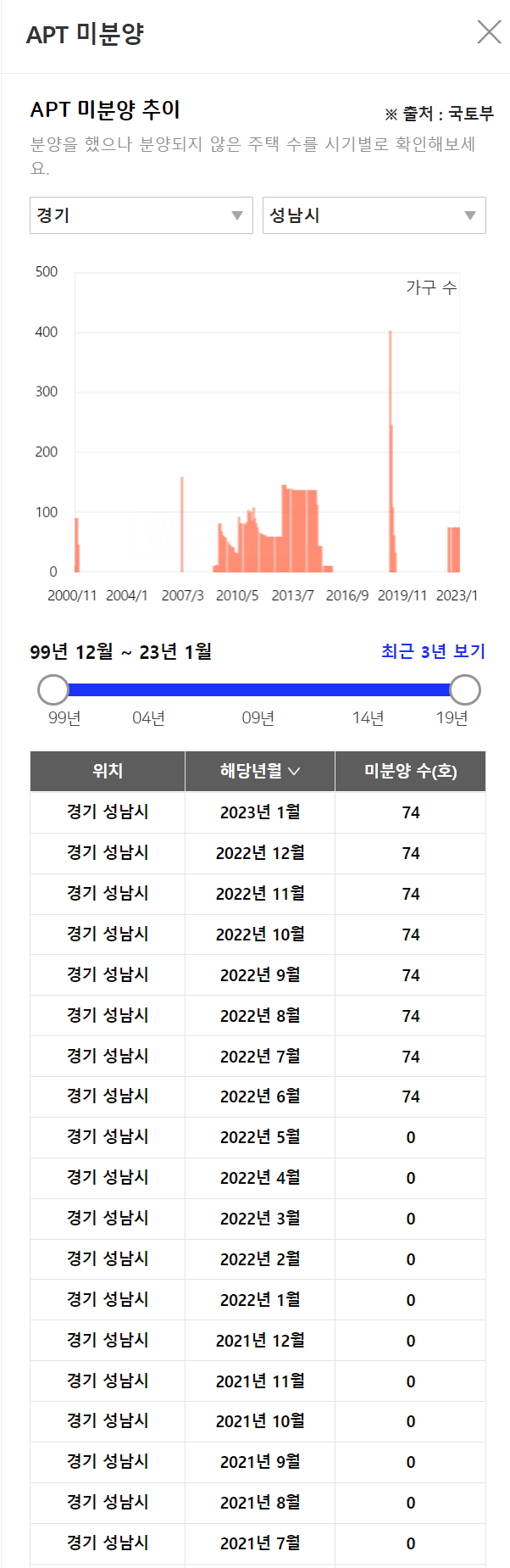 <경기 성남시 미분양 현황>