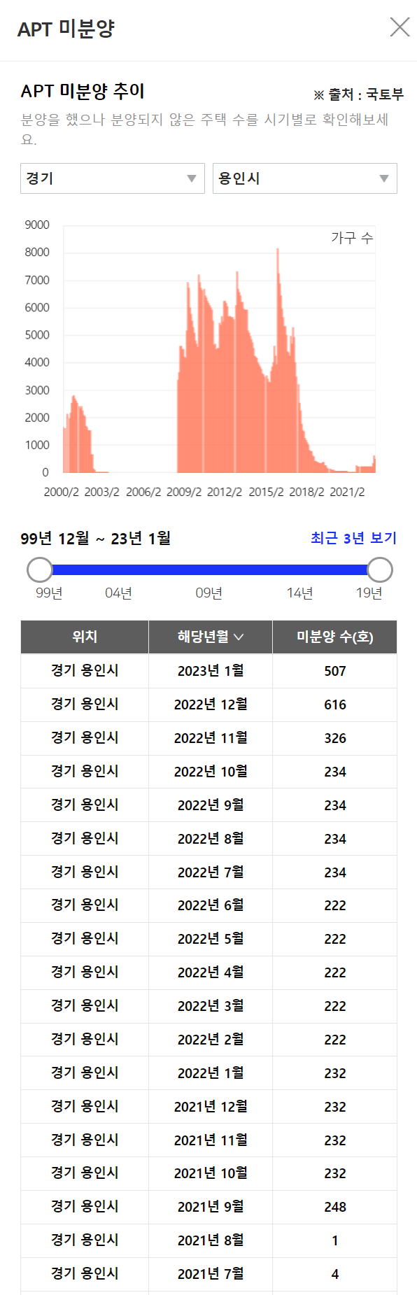 <경기 용인시 미분양 현황>