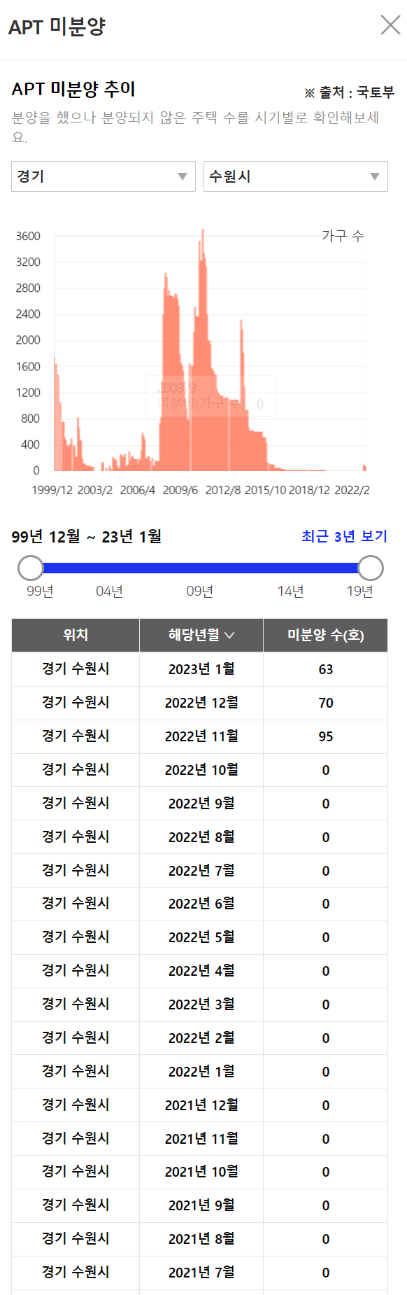 <경기 수원시 미분양 현황>