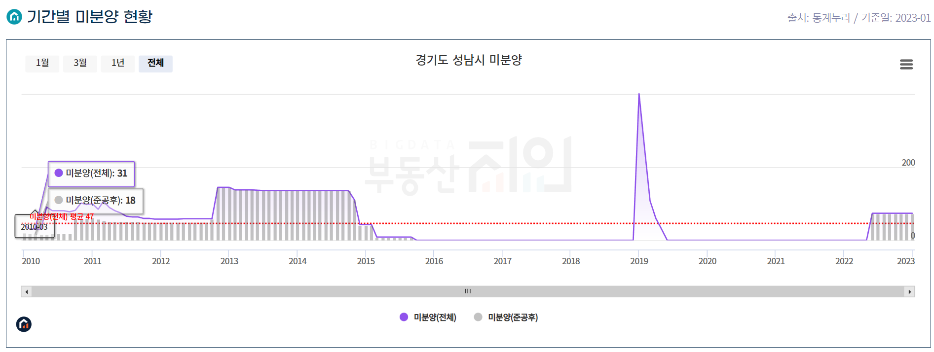 <경기 성남시 미분양 현황>