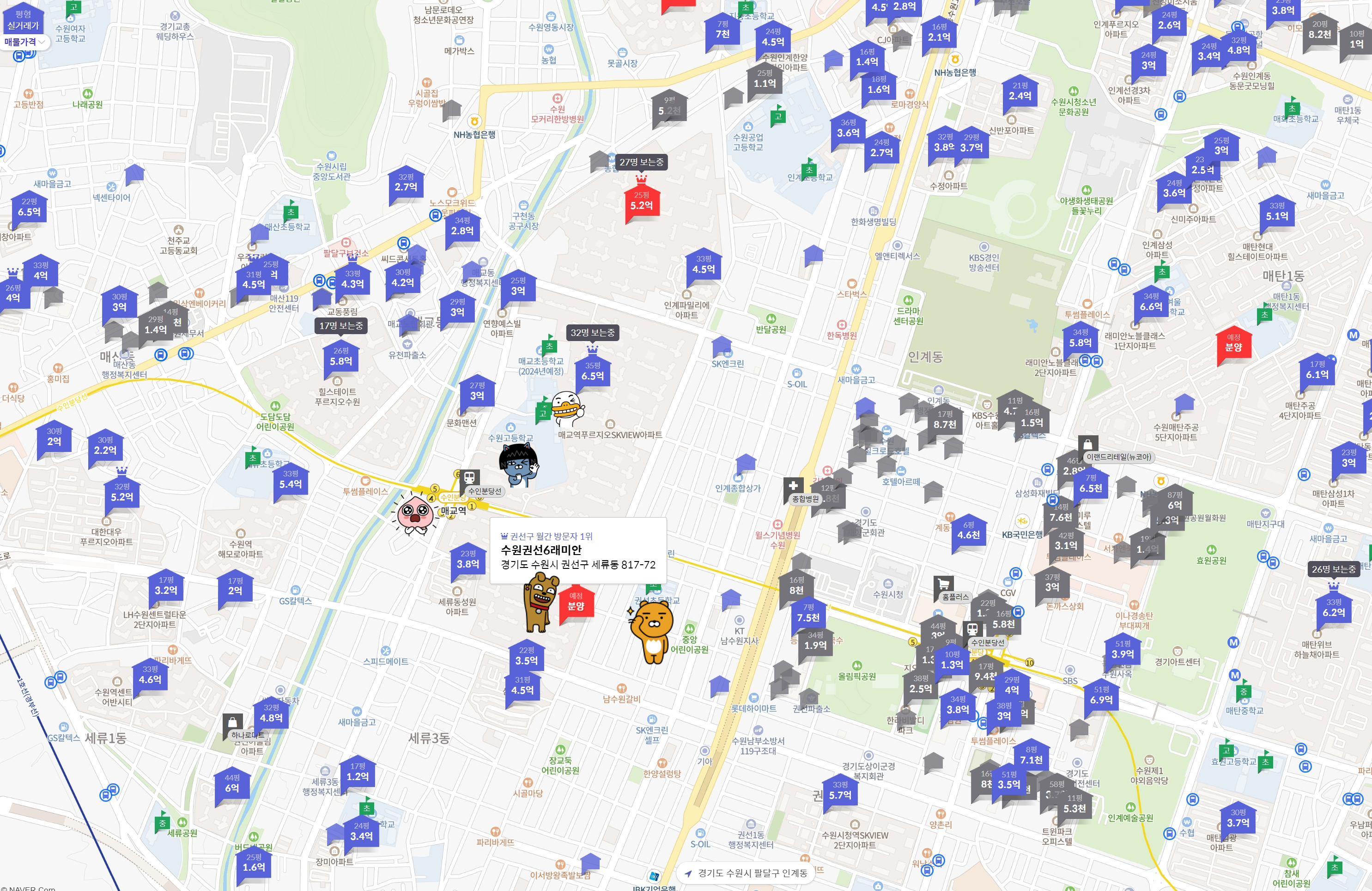 ▶ 스티커가 붙어있는 곳이 분양 위치, 매교역,