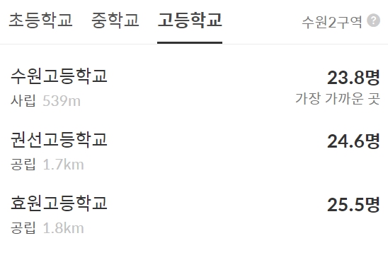 권선초, 수원중, 수원고 위치입니다.