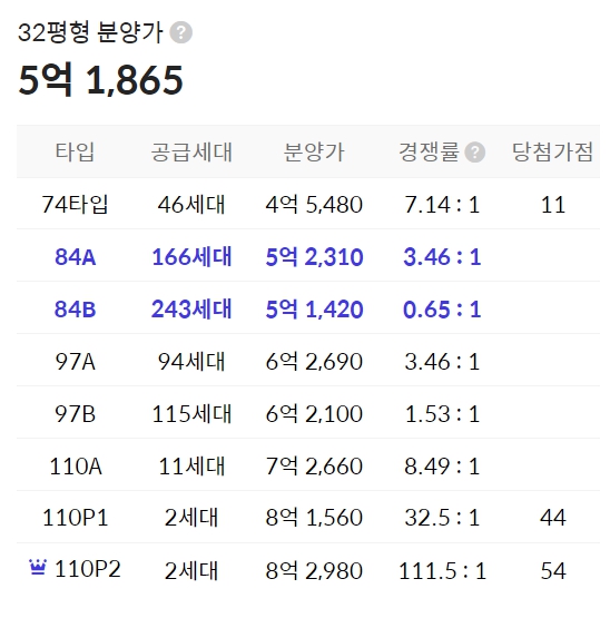 4. 동탄 파크릭스 청약 경쟁률 및 분양가