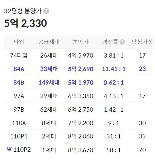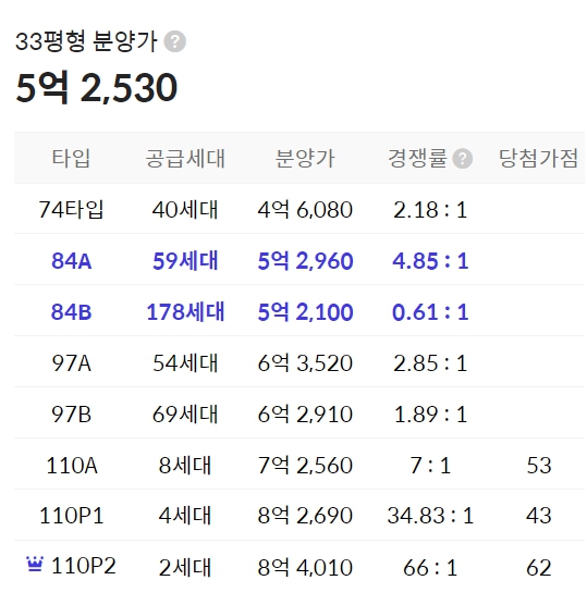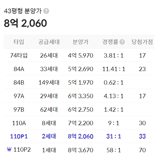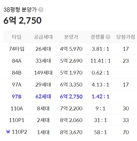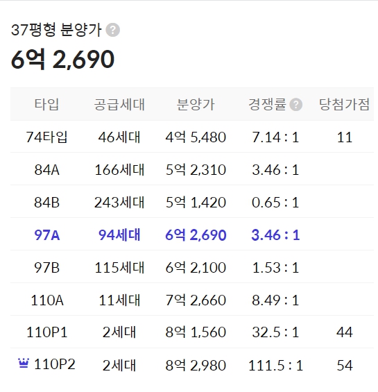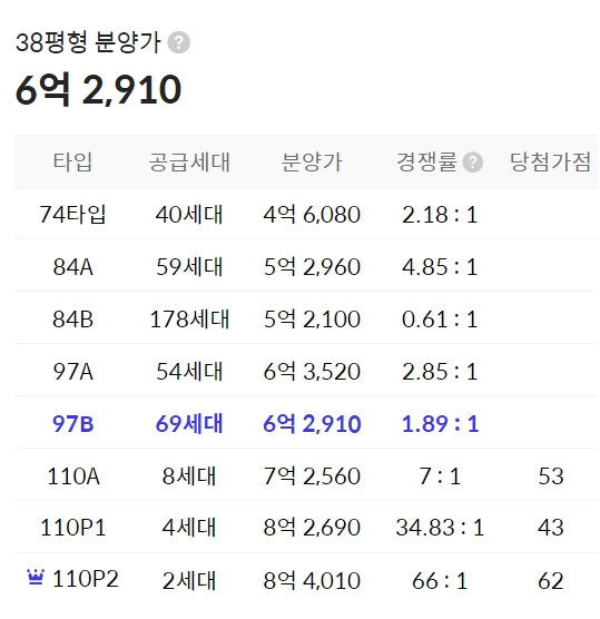 97㎡(209세대), 110㎡(15세대)