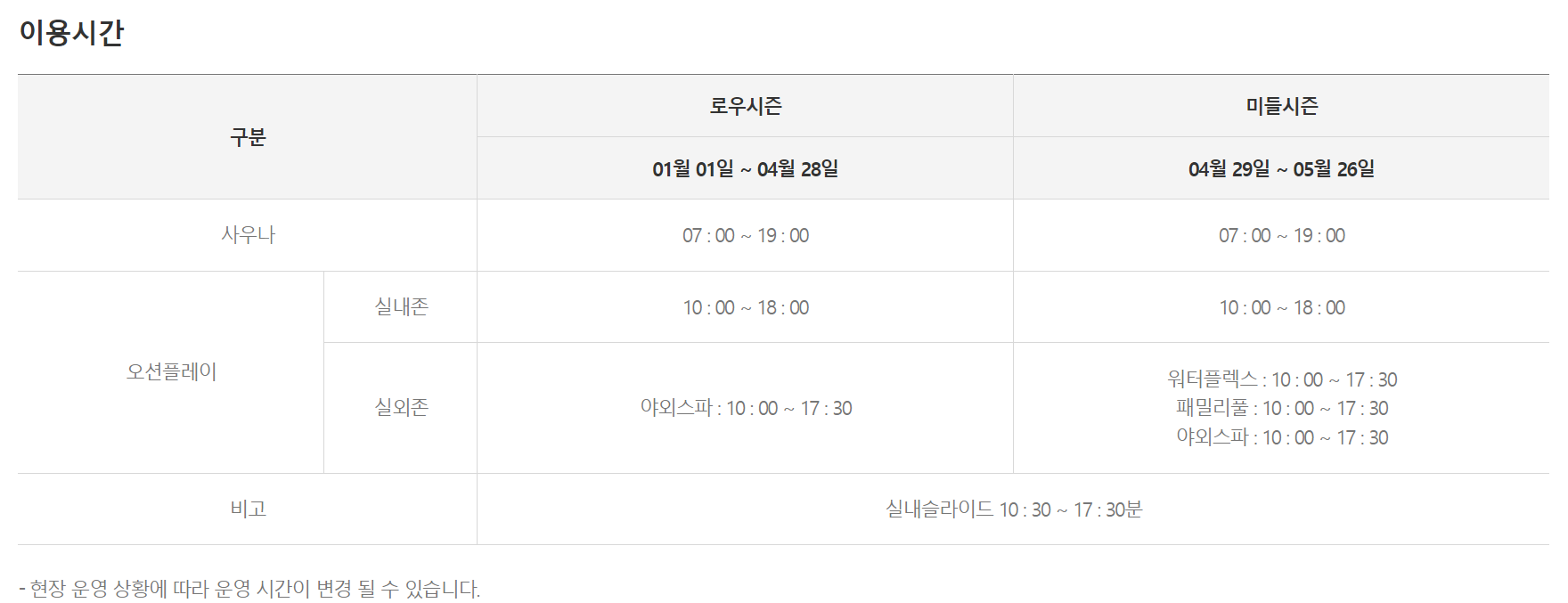 - 이용시간: 07:00~19:00 (사우나도 동일)
