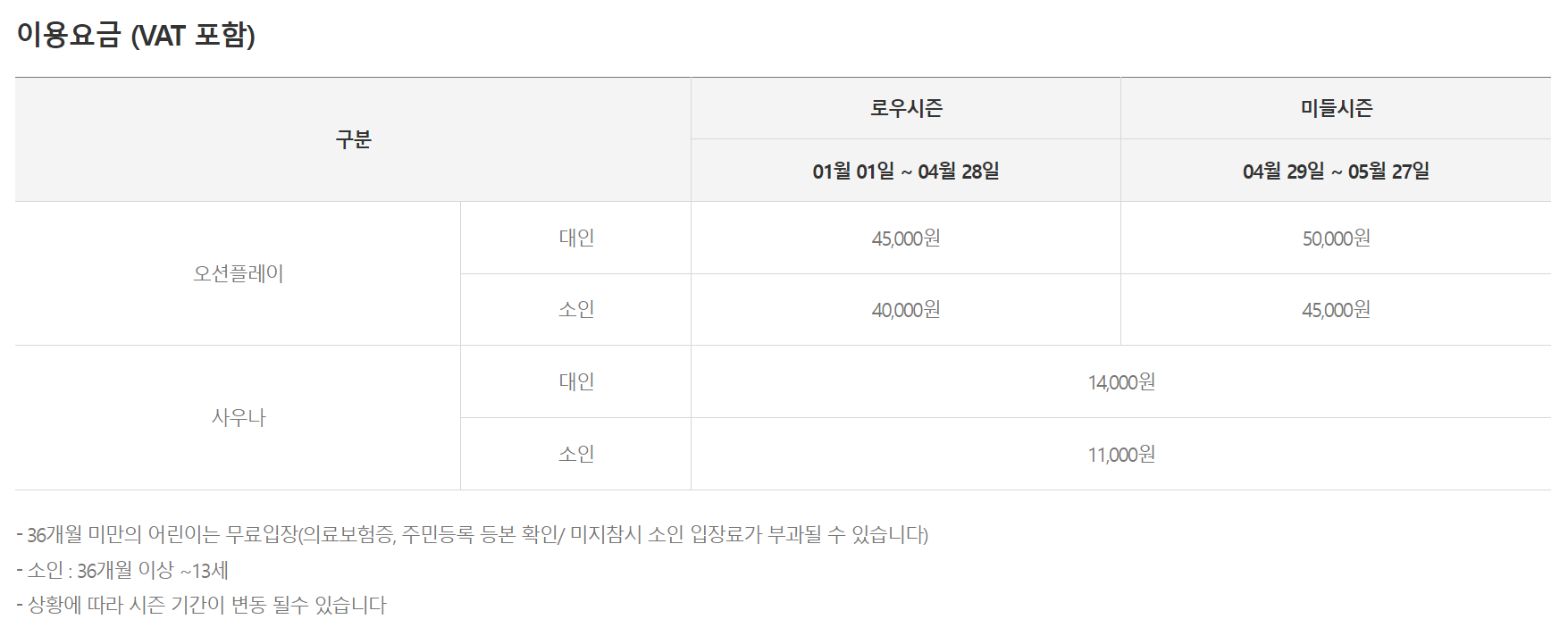 36개월 미만 무료입장 (증빙서류 지참 必)
