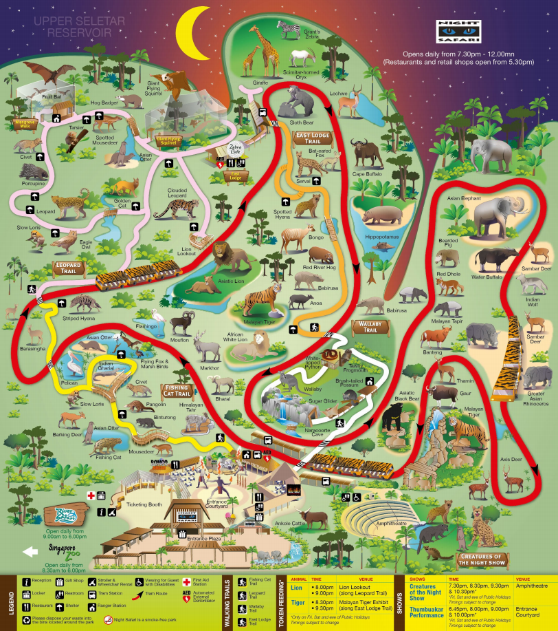 또한 야외극장에서 빈투롱, 사향 고양이, 카피바라 등 동물들이 선보이는 공연(Creatures of the Night)도 관람하실 수 있으니 미리 공연시간을 확인하시고 나이트 사파리 투어를 하시는 게 좋을 것 같습니다.
