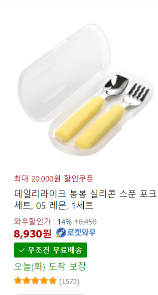아기가 어릴 때는 어린이집에서 제공하는 스푼, 포크가 입에 너무 클 수 있어요. 아기용 스푼, 포크를 준비해서 보내면 더욱 더 밥을 잘 먹을 수 있겠죠?