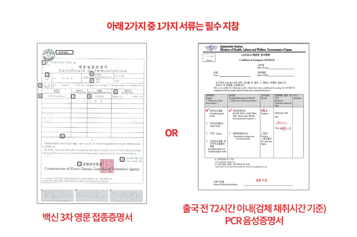 ✔ 백신 3차 영문 접종증명서 소지시 PCR 음성증명서 필요 없음.