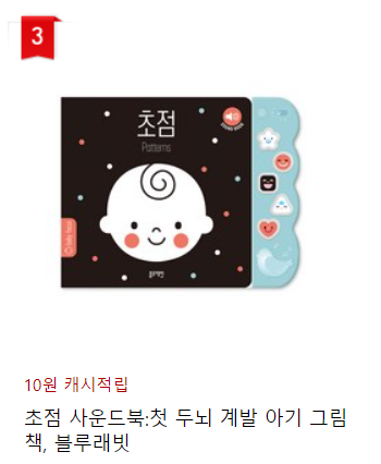 아기는 처음 태어나면 눈이 거의 안보여요. 점점 자라면서 초점도 맞고 눈도 잘 보이게 되거든요. 그렇게 눈의 힘을 길러주는 초점책은 임신 때 사놓으면 조리원에 꼭 챙겨가는 아이템이예요. 아기가 침대에 누워있을 때 꼭 초점책을 옆에 펼쳐놔줘요. 아기도 덜 심심하고 눈의 힘도 기르니 좋겠죠.
