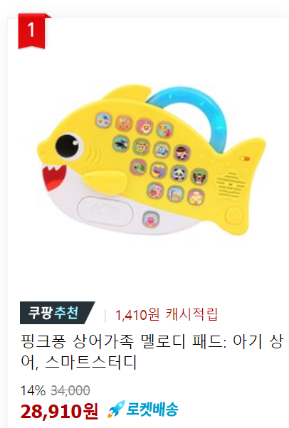 요거 하나 있으면 핸드폰으로 유튜브, 멜론 검색해가면서 노래 틀어 줄 필요가 없어요. 이거 하나 틀어놓으면 한참동안 노래가 나오거든요. 버튼 누르면 반짝 반짝 불빛도 들어와서 아기가 가지고 놀기 참 좋더라고요. 계속 누르면 좀 시끄러워진다는 게 단점이긴 하지만요.