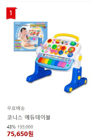 또 하나의 국민템이죠. 에듀테이블입니다. 보시다시피 테이블 위에 다양한 놀거리가 많아서 아이들이 정말 좋아하더라고요. 가격대가 좀 있는 편이고 갖고 놀 수 있는 시기가 그렇게 길진 않으니 중고거래 시장을 찾아보는 것도 방법이겠죠?