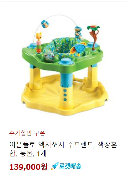 이것도 또 하나의 국민템인데요. 저는 쏘서 정말 잘 썼어요. 허리에 힘 생기고 나서부터 여기에 많이 앉혀놓았는데요. 여기서 아기 놀으라고 하면서 집안일 참 많이 했답니다. 힘들 때 한번씩 앉혀놓으면 점프 점프 하다가 응가도 하고...참 많은 시간을 여기서 보냈습니다. 저희 아이들은 둘 다 너무 좋아했어요.