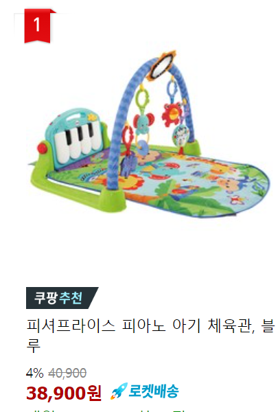 국민템 중에 하나죠. 아기가 태어난 지 한 50일쯤부터 잘 사용했던 거 같아요. 특히 짧은 다리를 버둥거리면서 피아노 건반을 치면 자기도 신나서 마구마구 쳐댔던 기억이 납니다. 위에 대롱대롱 달려있는 인형들을 만지면서 놀기도 하고요.