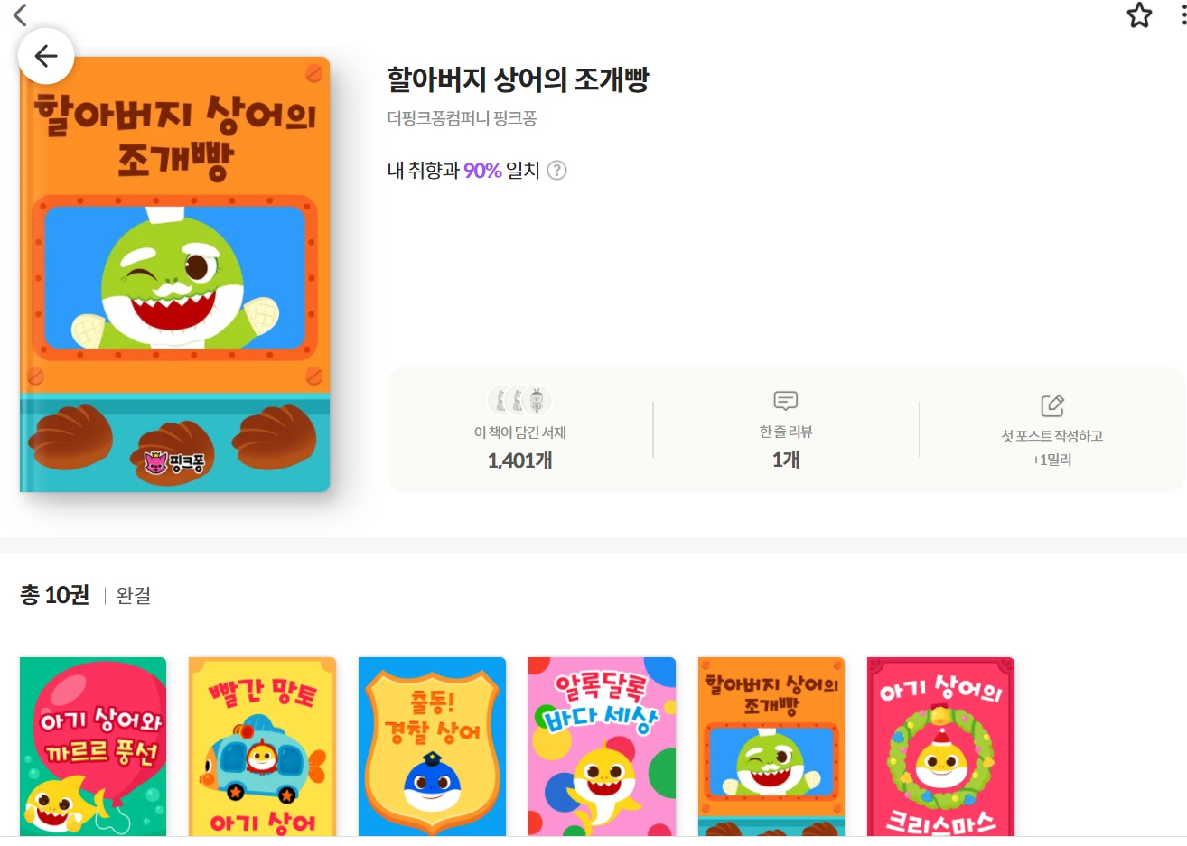 ● 아이가 있는 집이라면 핑크퐁, 타요, 전래동화 등 아이와 함께 읽을 수 있는 오디오북의 종류도 다양합니다. 저는 아이와 함께 자기 전에 한 10권씩 읽고 자는 것 같아요.
