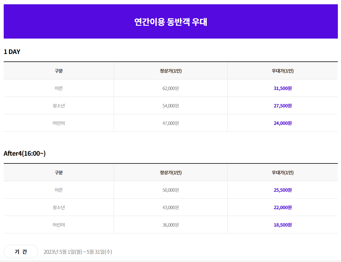 2023년 에버랜드 연간회원권, 연간이용권, 가격, 할인, 혜택