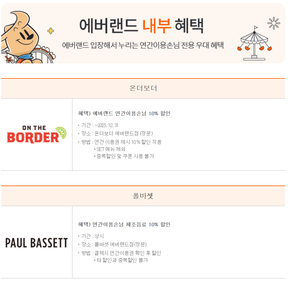 2023년 에버랜드 연간회원권, 연간이용권, 가격, 할인, 혜택