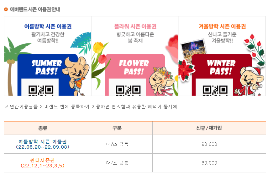 그럼 2023년 에버랜드 연간이용권 가격, 할인, 제휴할인, 제공되는 혜택에 대해 알아보겠습니다.